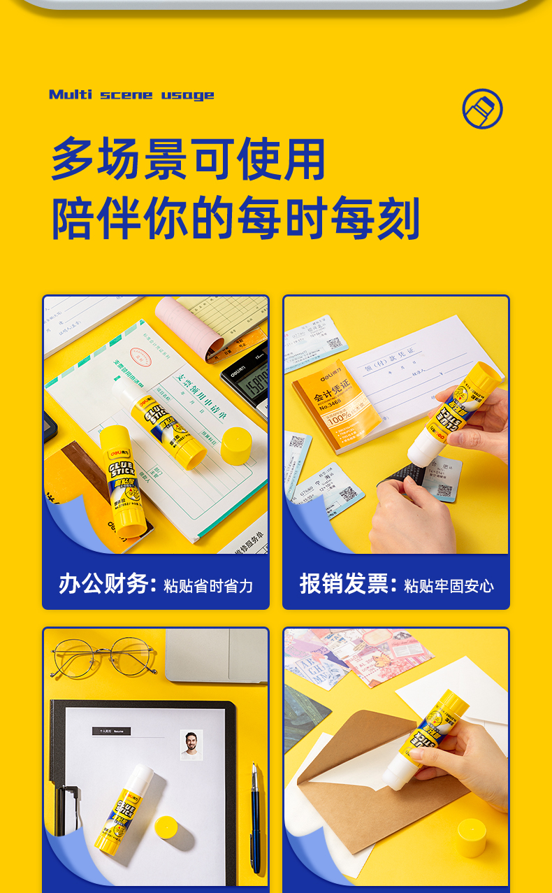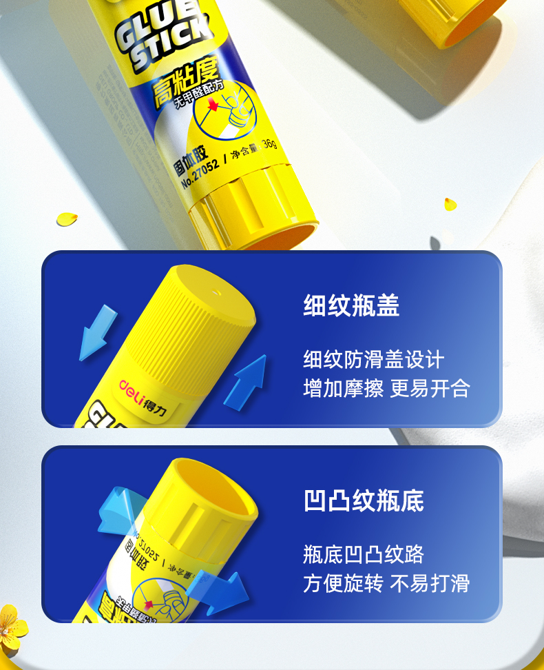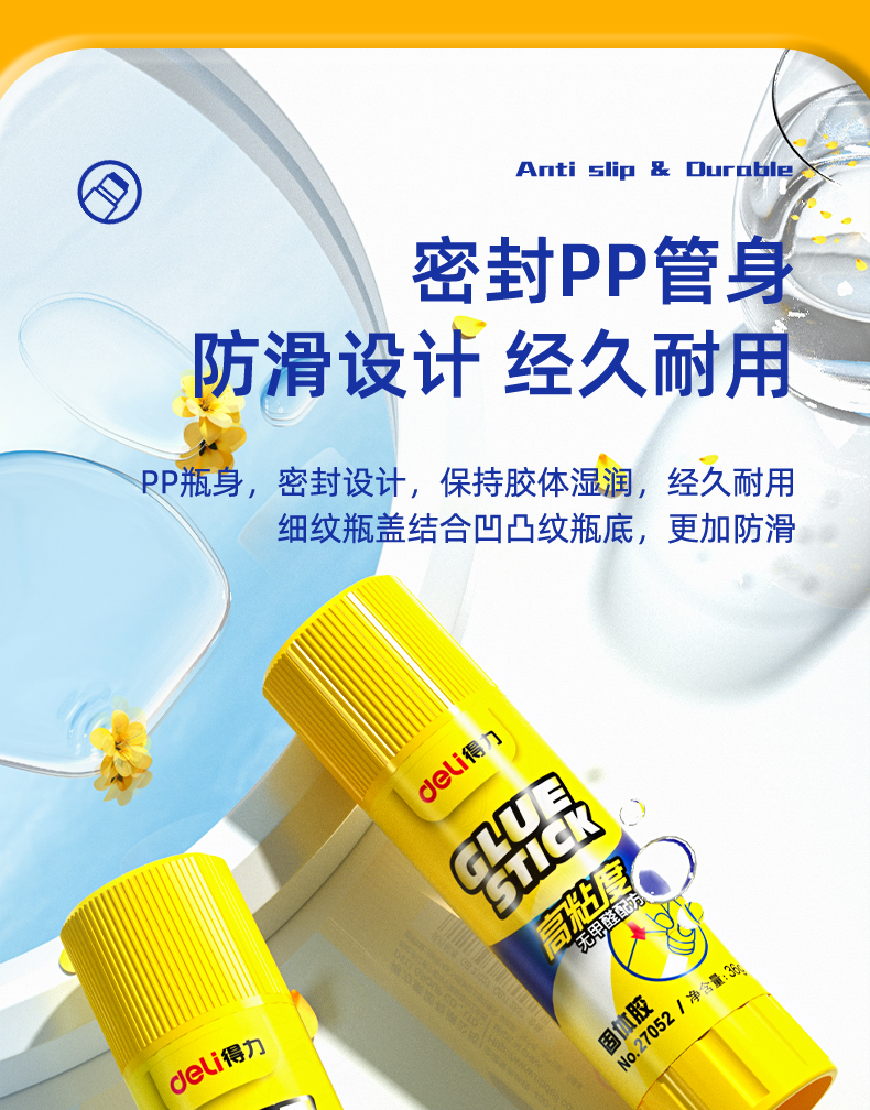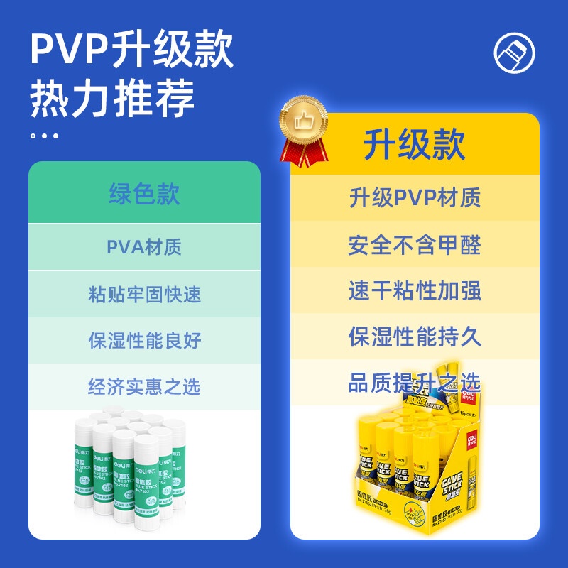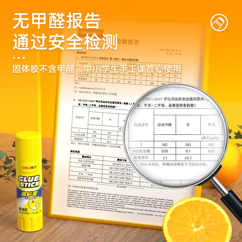 商品名称:得力(deli)36g高粘度PVP固体胶水 无甲醛快干耐用胶棒 12支装 办公用品 27052