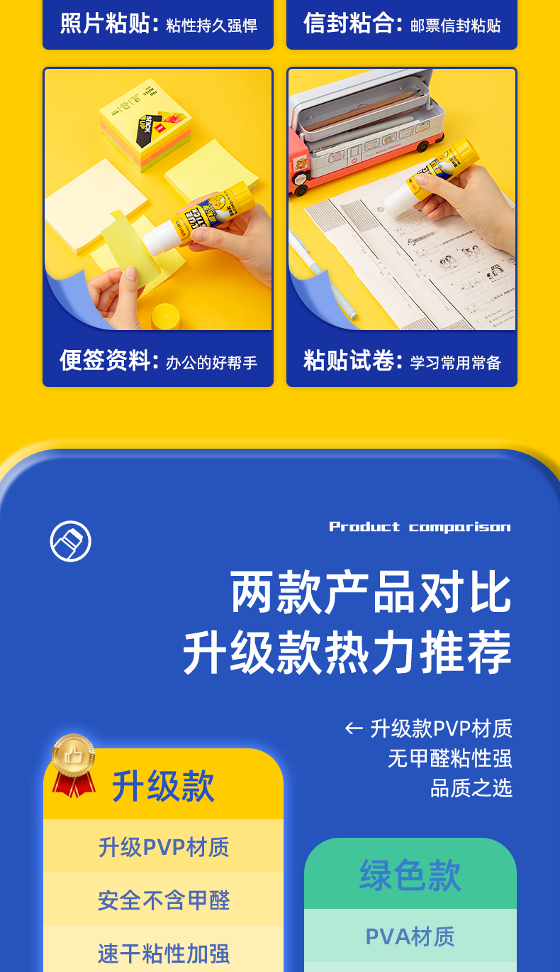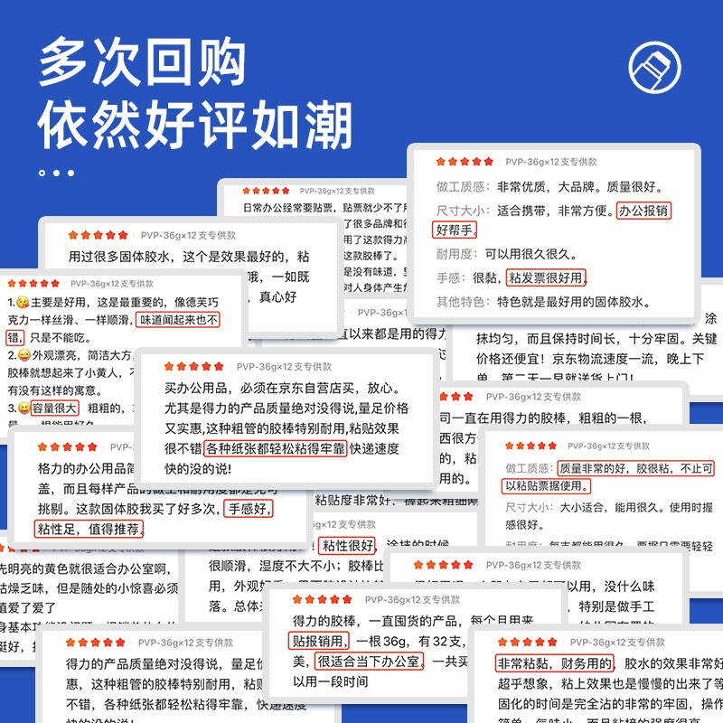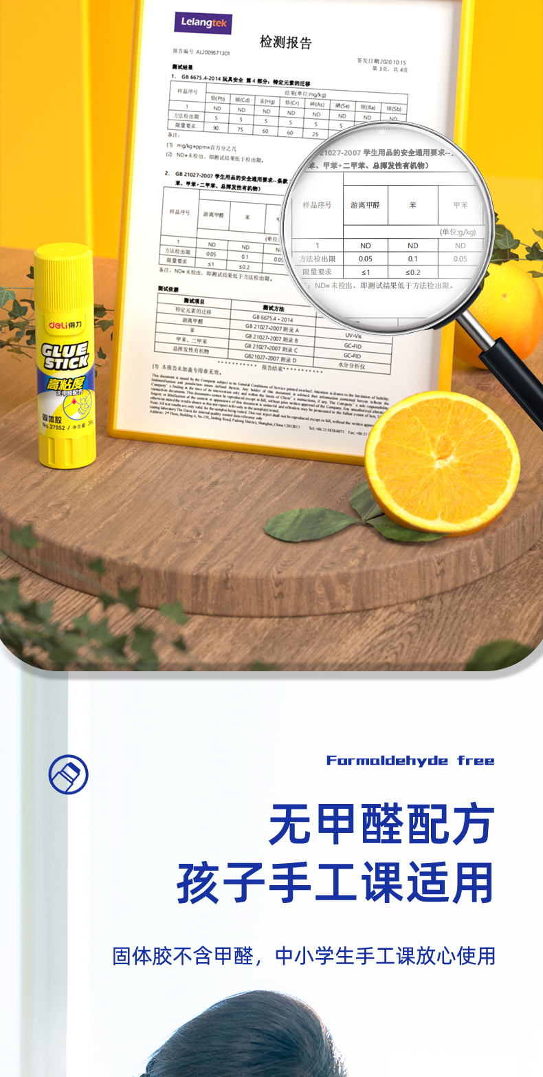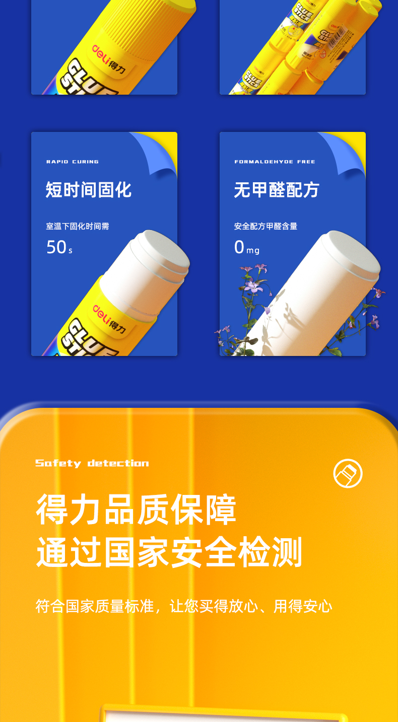 商品名称:得力(deli)36g高粘度PVP固体胶水 无甲醛快干耐用胶棒 12支装 办公用品 27052