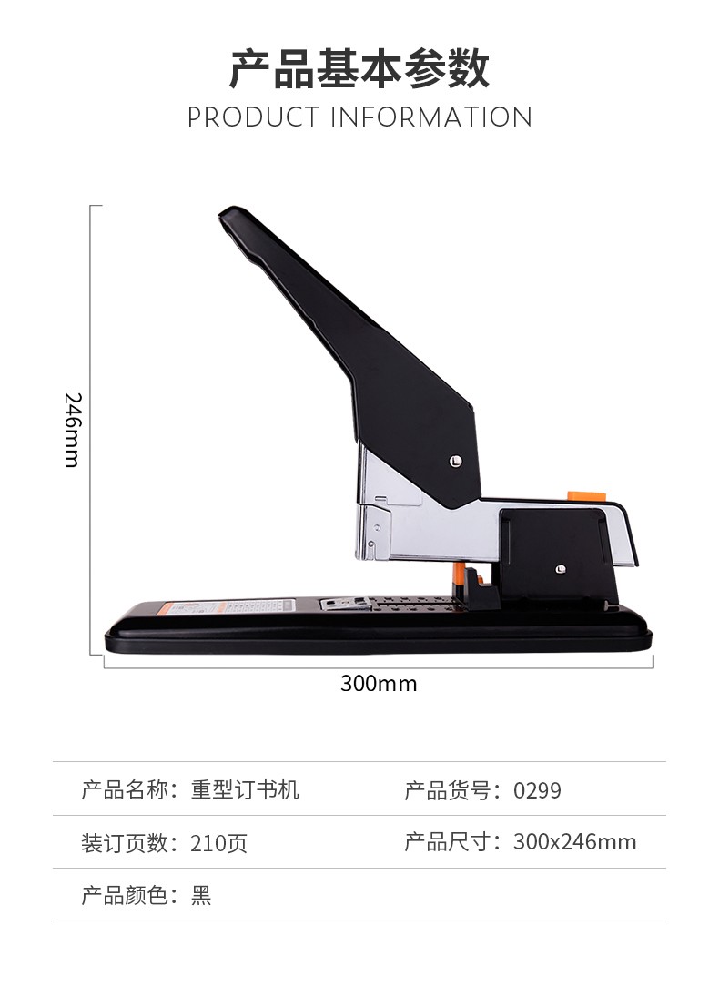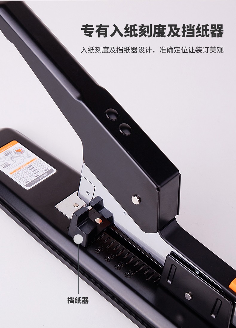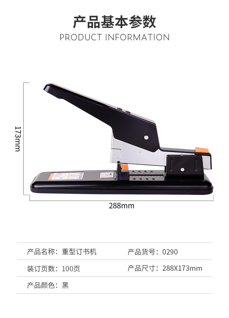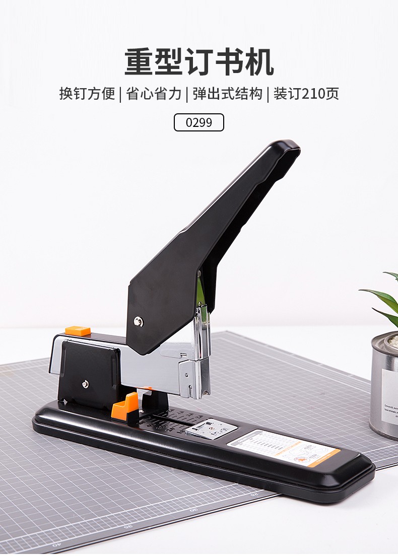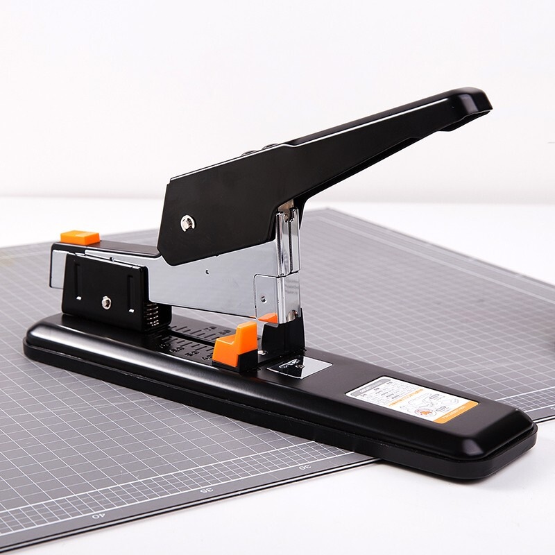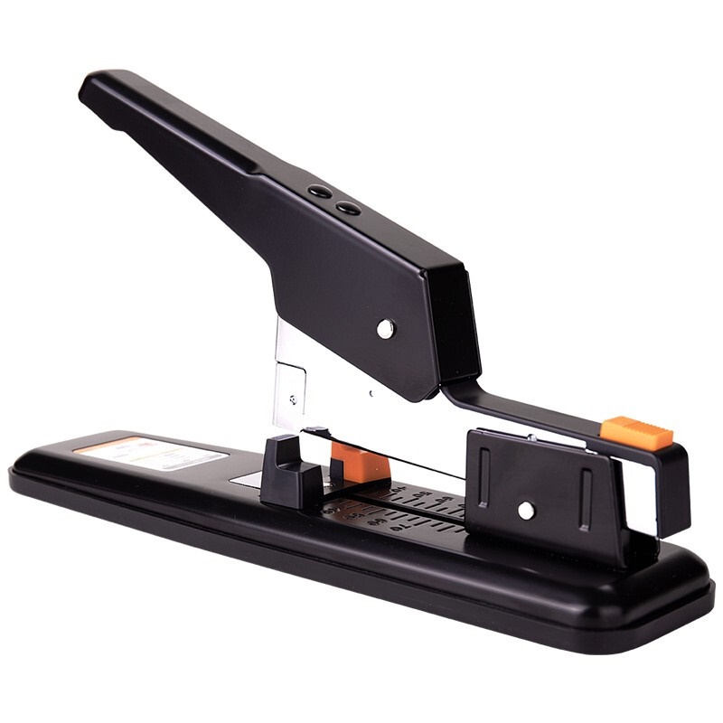 商品名称:得力(deli)重型订书机 省力型方便实用长臂加厚大号订书器钉书机办公装订机用品订本子 100页黑色重型订书机-0290
