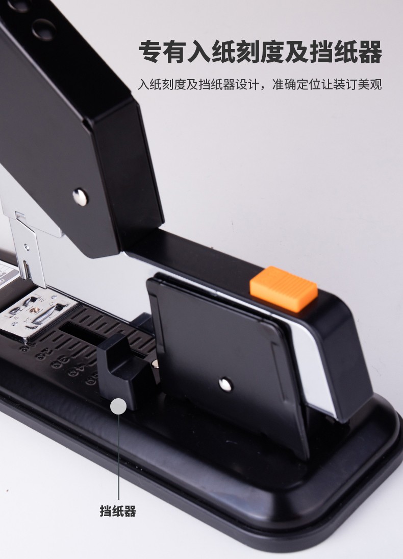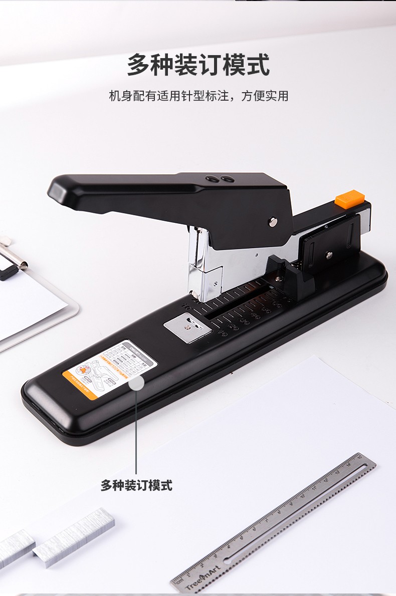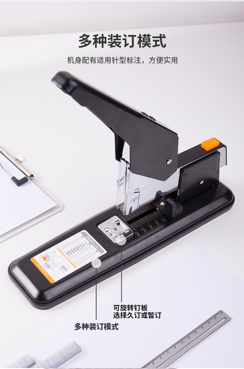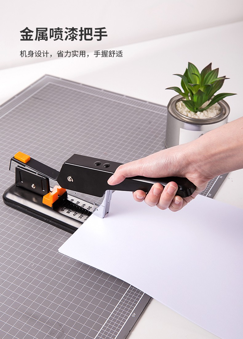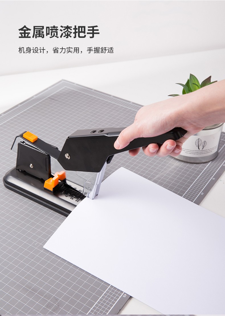 商品名称:得力(deli)重型订书机 省力型方便实用长臂加厚大号订书器钉书机办公装订机用品订本子 100页黑色重型订书机-0290