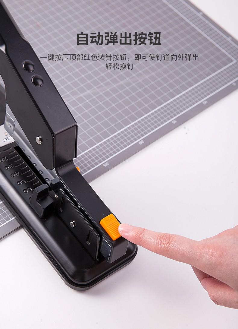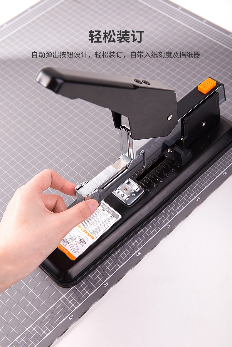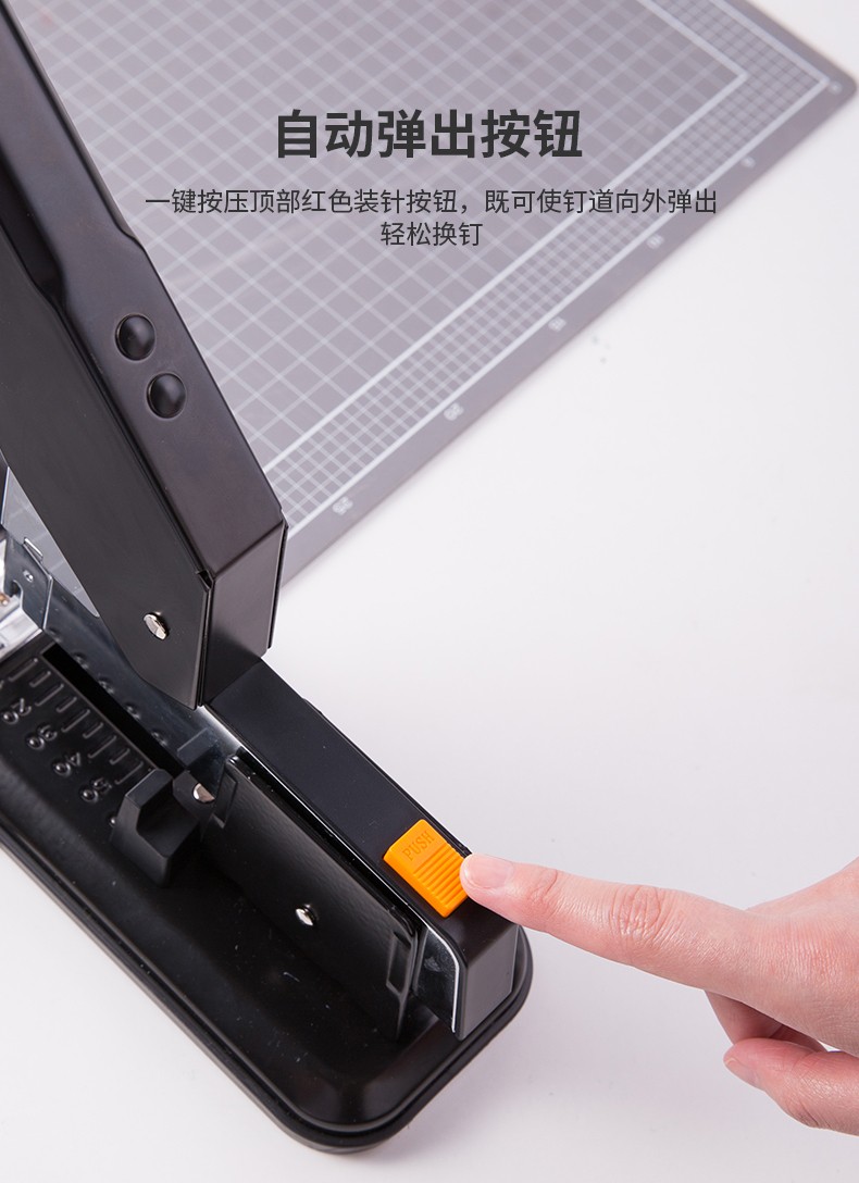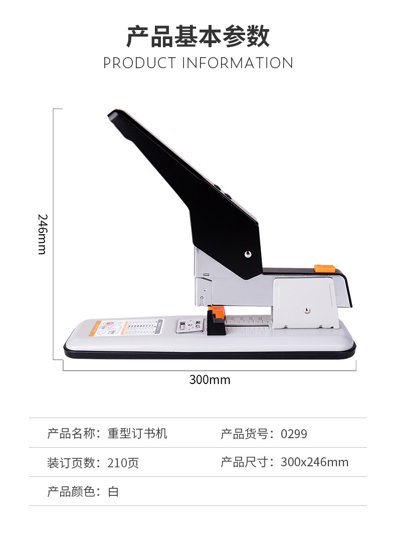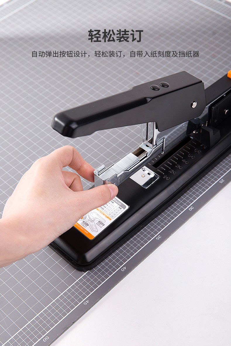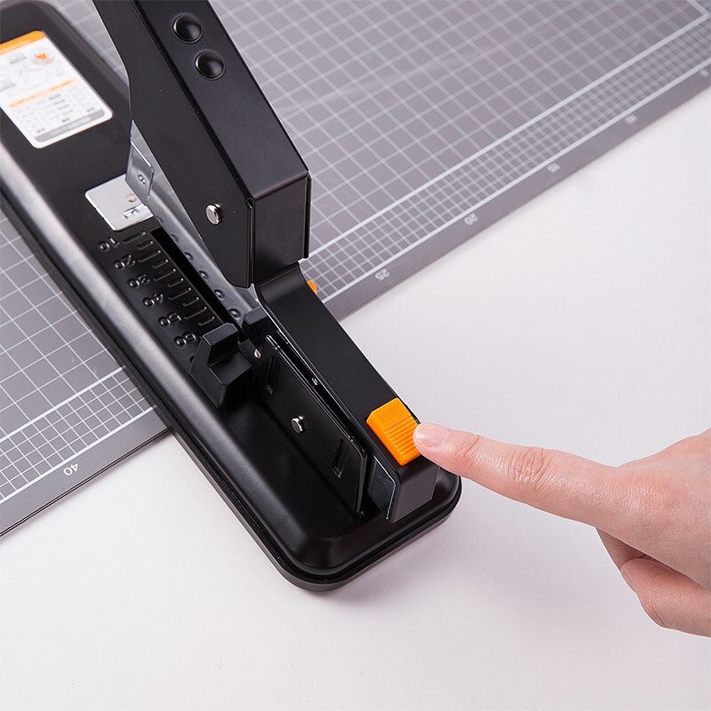商品名称:得力(deli)重型订书机 省力型方便实用长臂加厚大号订书器钉书机办公装订机用品订本子 100页黑色重型订书机-0290