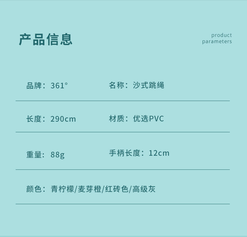 商品名称:361°跳绳中小学生考试专用沙式跳绳体育健身无计数竞速跳绳 青柠色