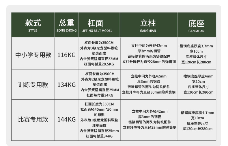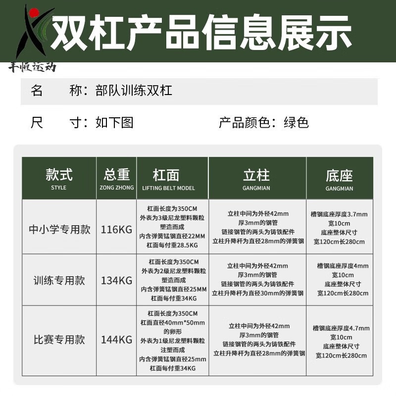 商品名称:双杠室外军训户外健身器材学校比赛训练铸铁可调节中小学体育用品批发 120KG【学校款】