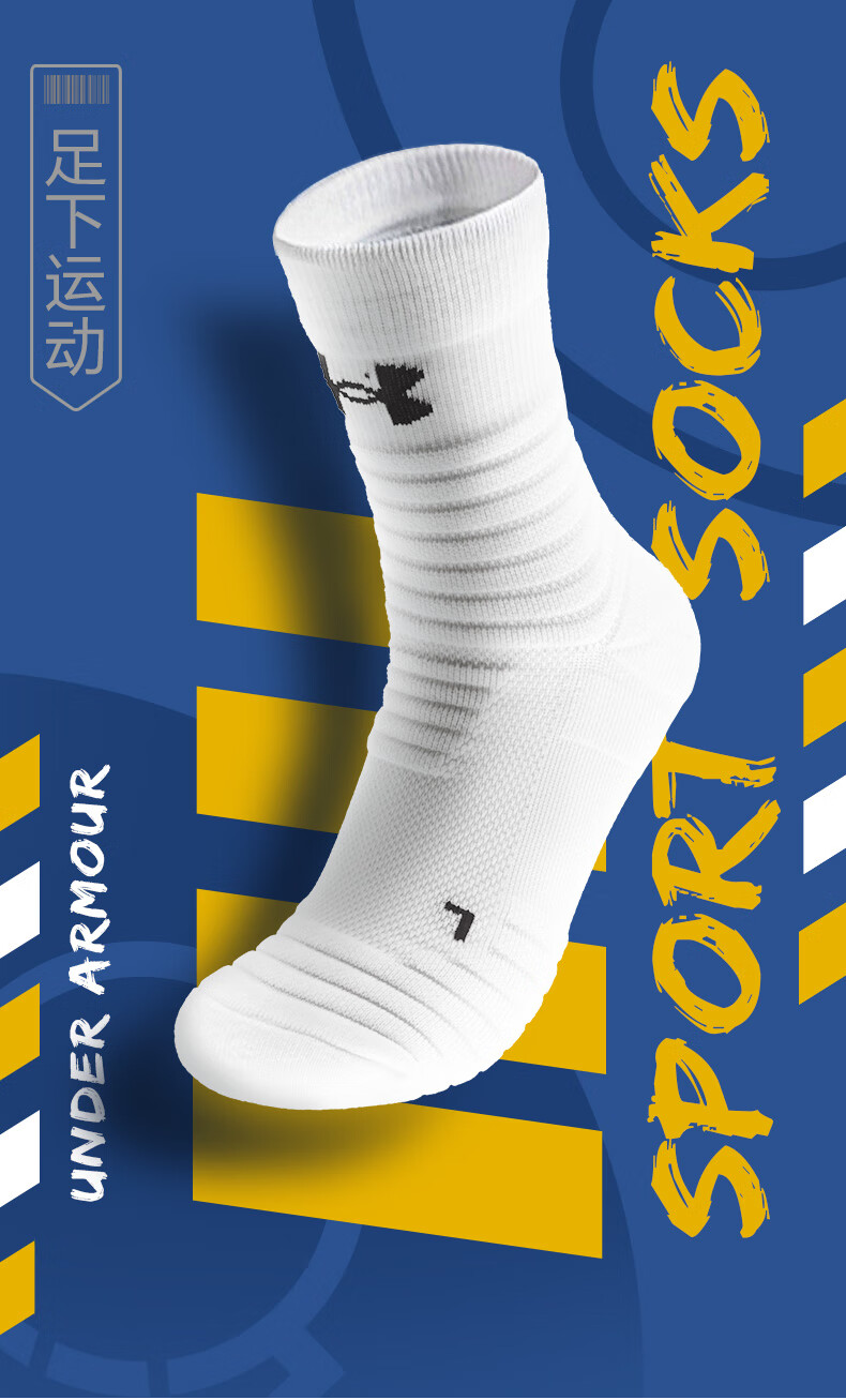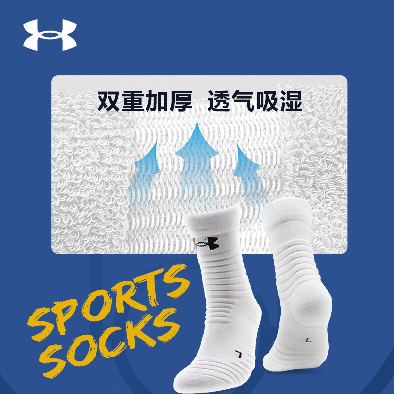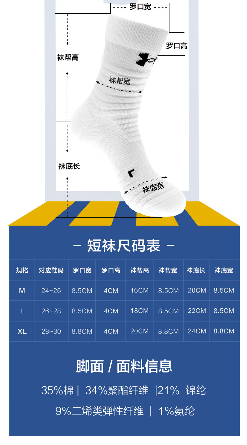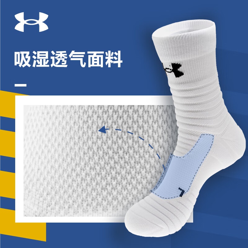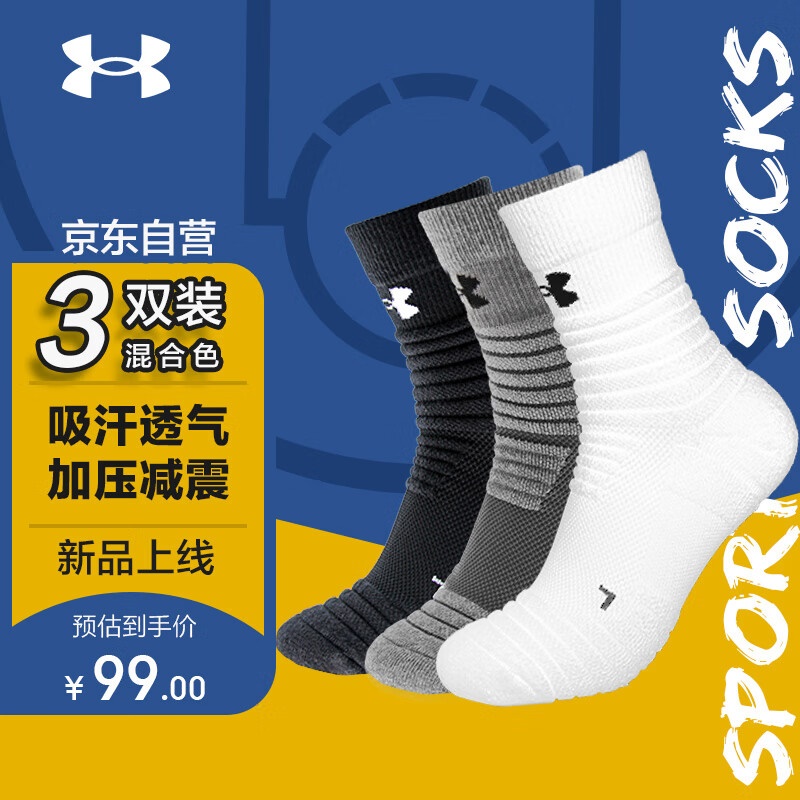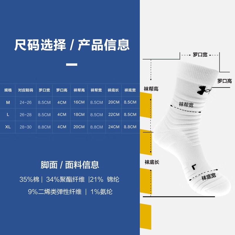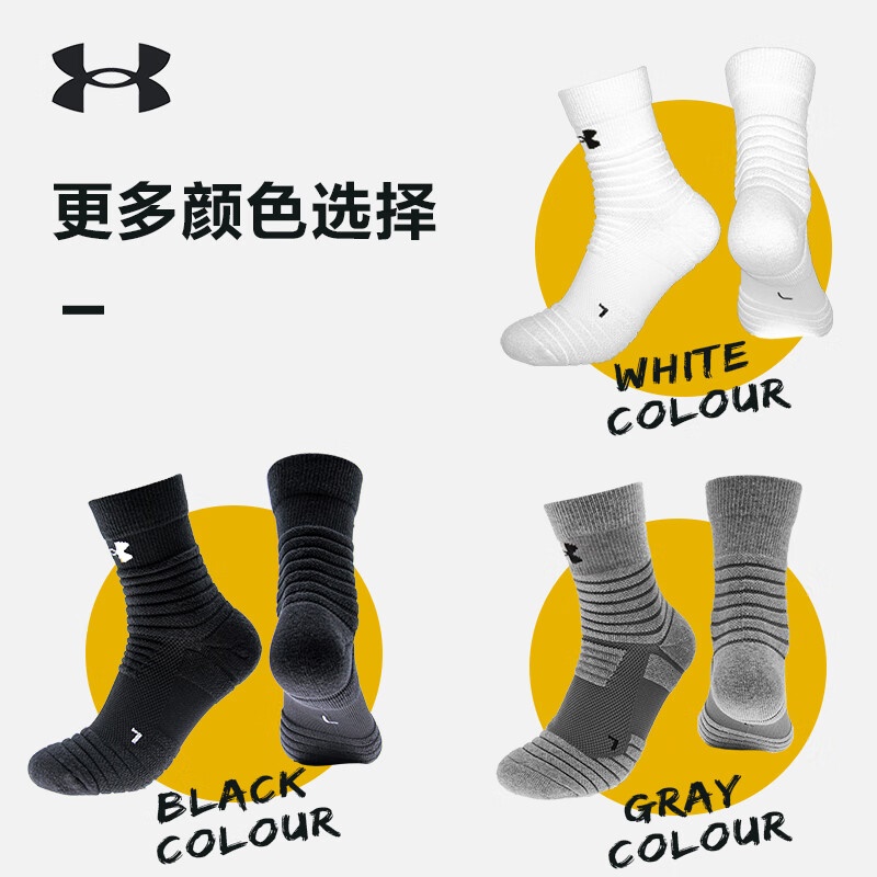 商品名称:安德玛Under Armour篮球袜 吸汗防滑底运动袜专业跑步袜子男女透气中筒透气防磨加压款棉袜【三双装】组合色L