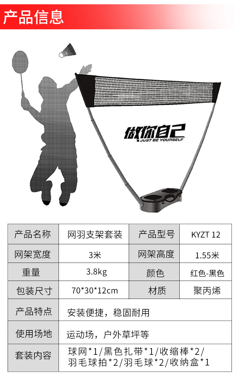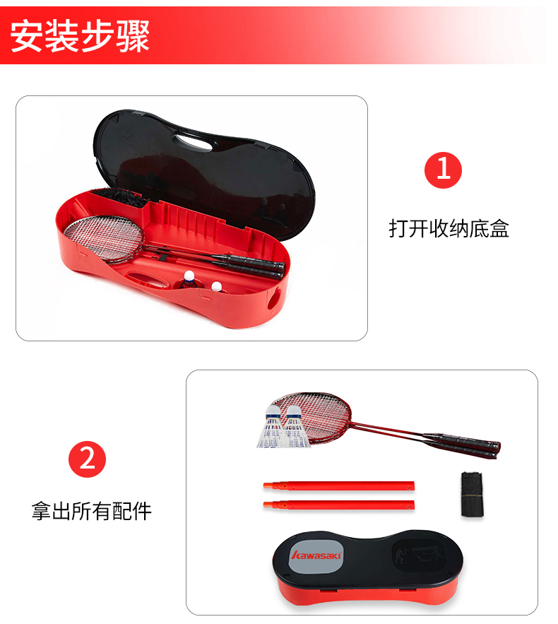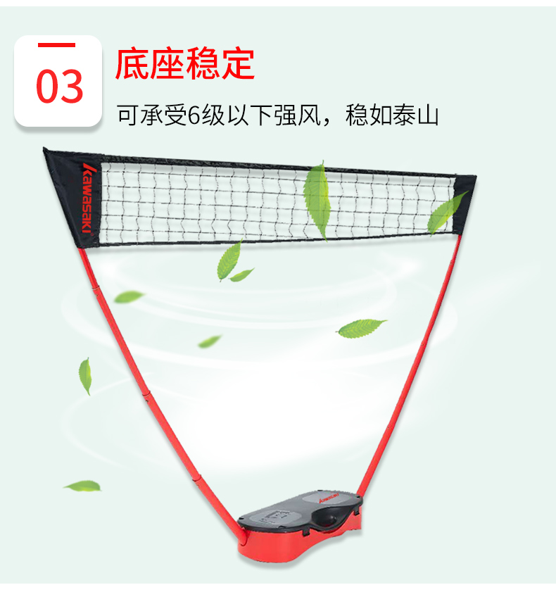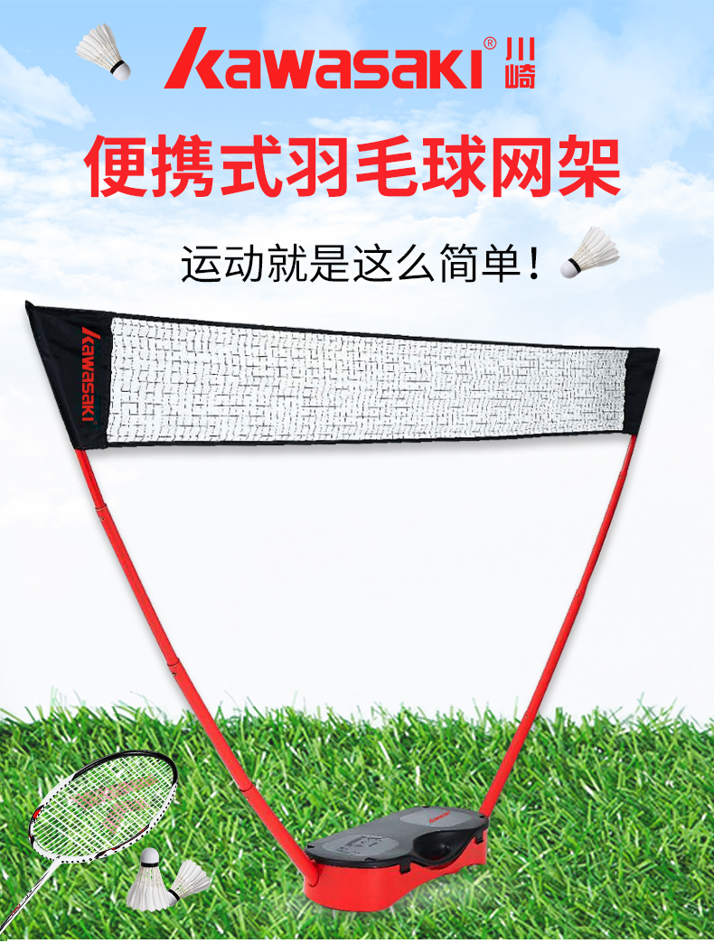 商品名称:川崎(KAWASAKI)羽毛球网架简易便携式家用户外室外移动折叠标准支架套装3*1.55M)