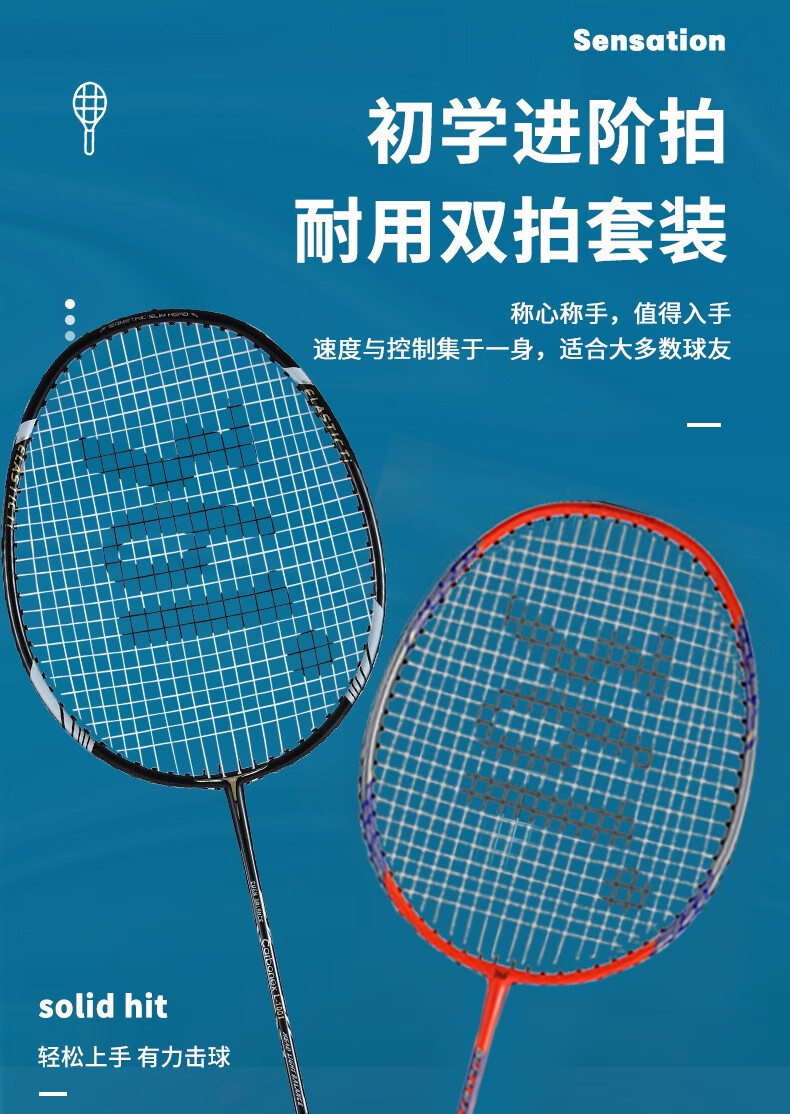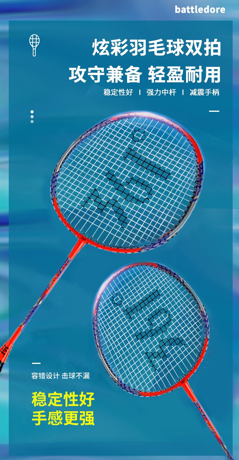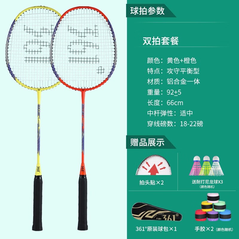 商品名称:361°羽毛球拍套装含羽毛球专业训练一体双拍已穿线含手胶 橙黄双拍