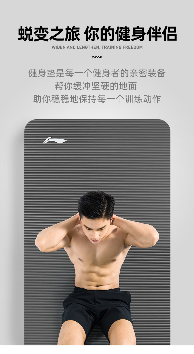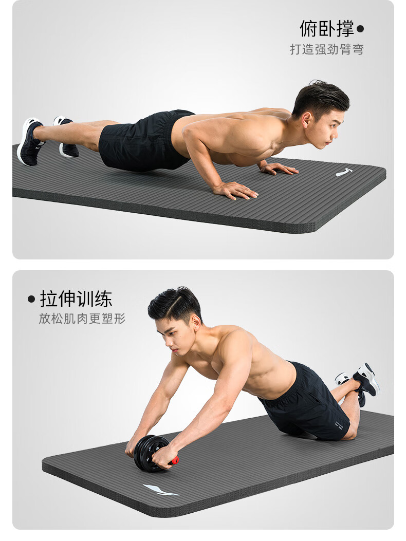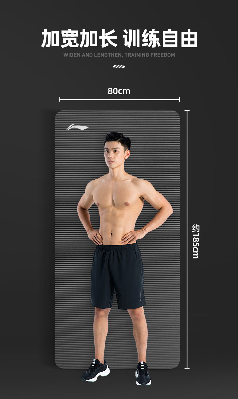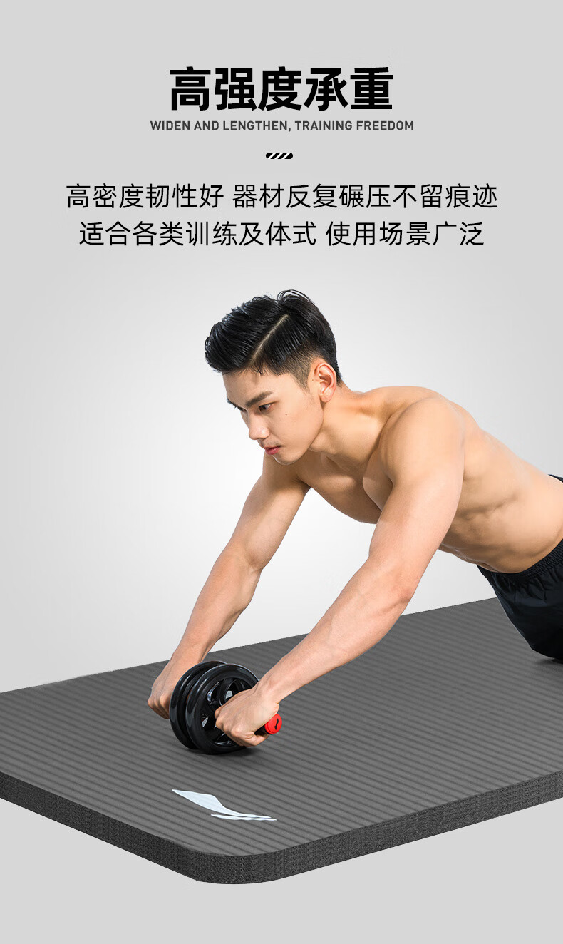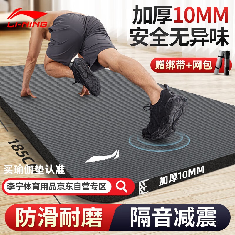 李宁瑜伽垫男士健身跳绳女隔音减震防滑加厚加宽仰卧起坐训练垫子静音锻炼专业毯子家用运动儿童舞蹈垫