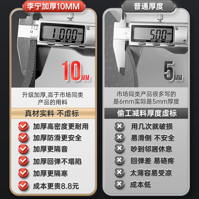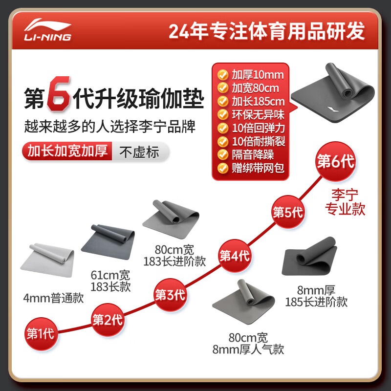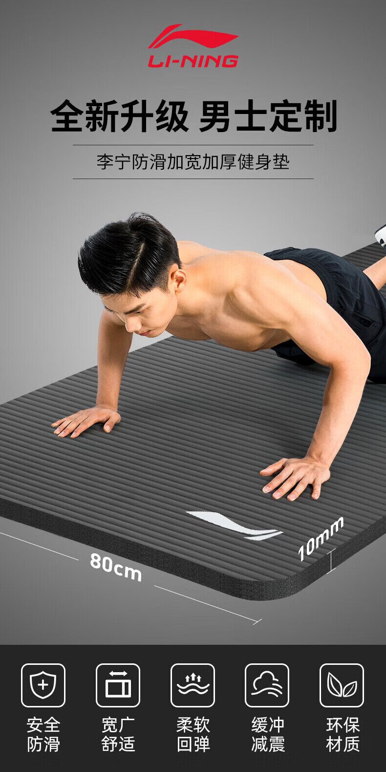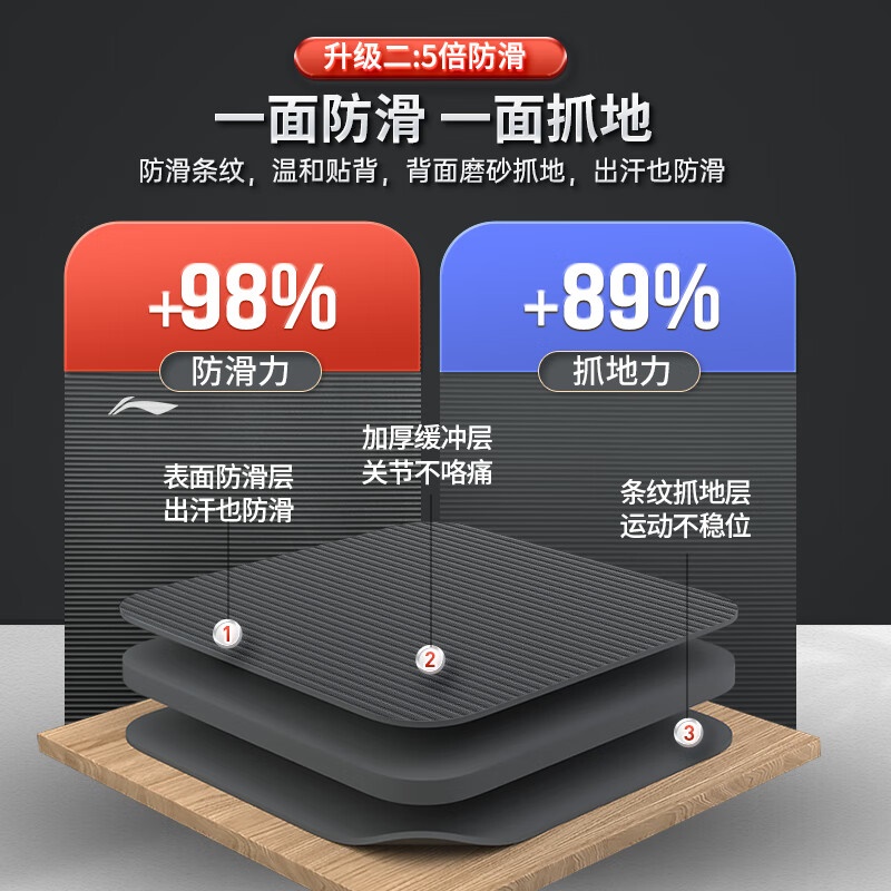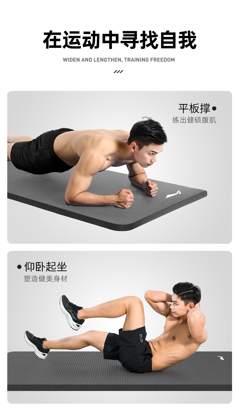 李宁瑜伽垫男士健身跳绳女隔音减震防滑加厚加宽仰卧起坐训练垫子静音锻炼专业毯子家用运动儿童舞蹈垫