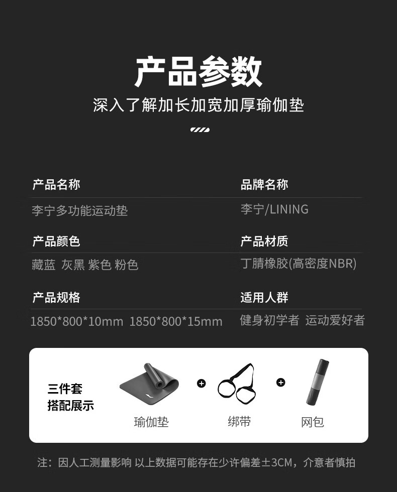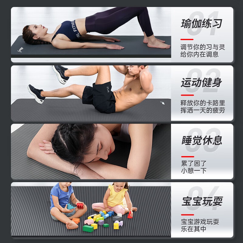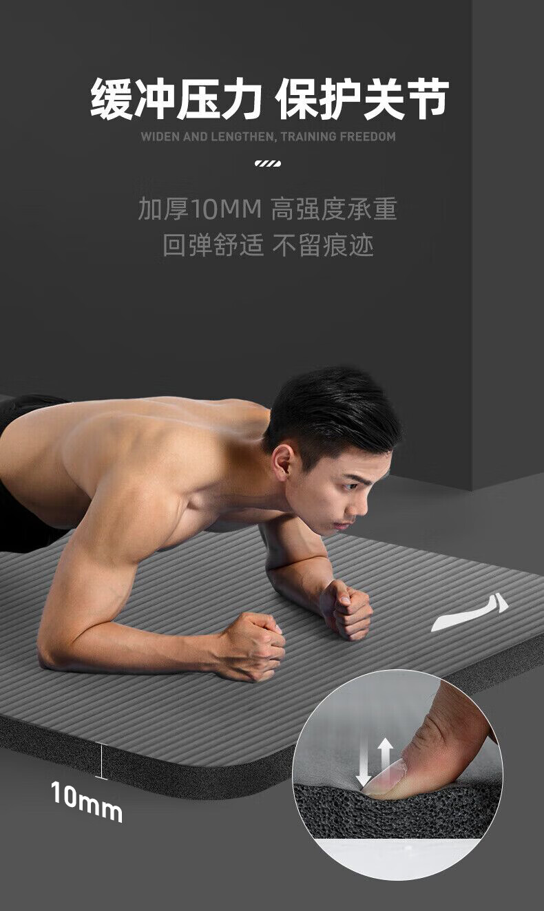 商品名称:李宁瑜伽垫男士健身跳绳女隔音减震防滑加厚加宽仰卧起坐训练垫子静音锻炼专业毯子家用运动儿童舞蹈垫