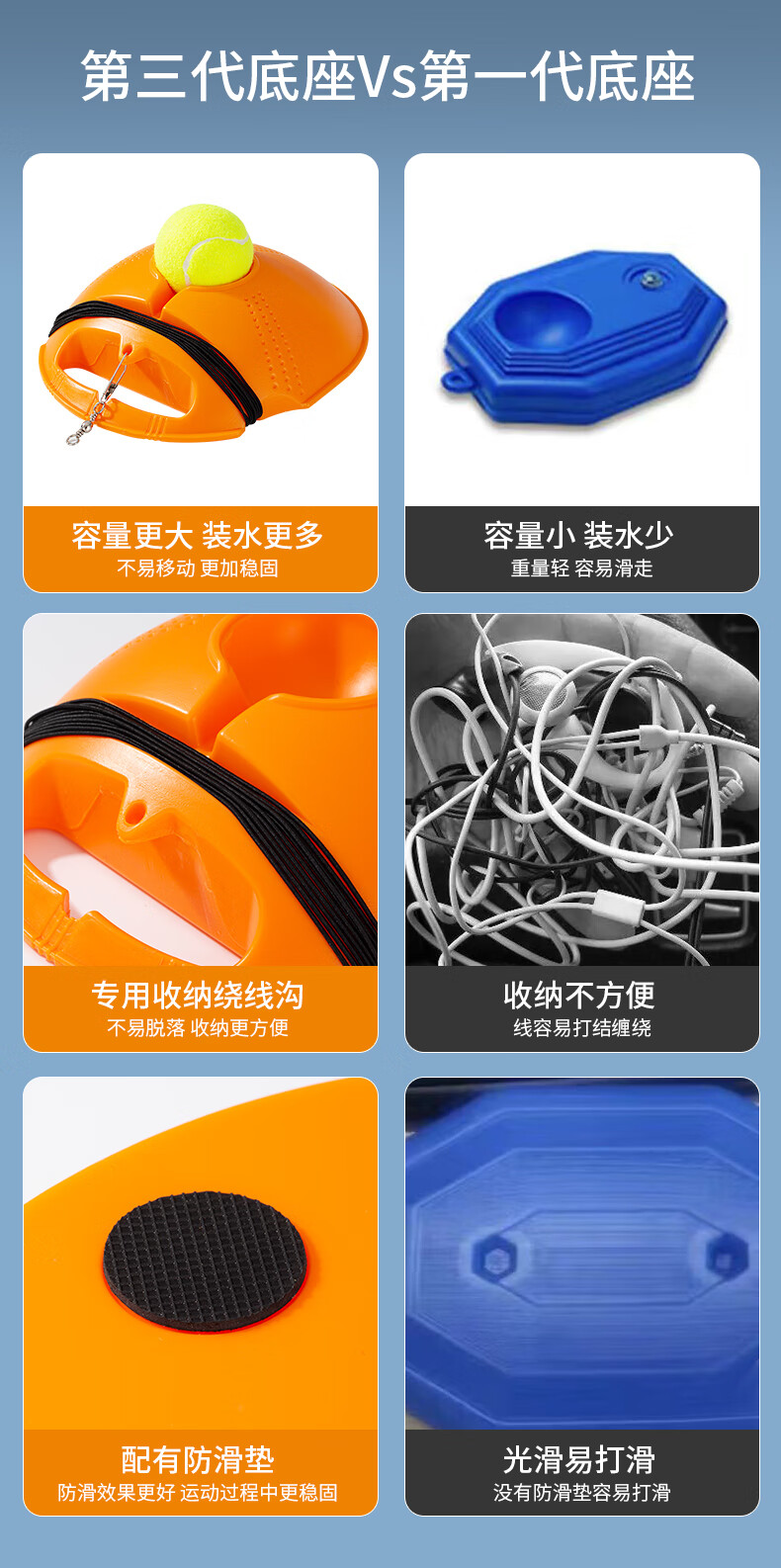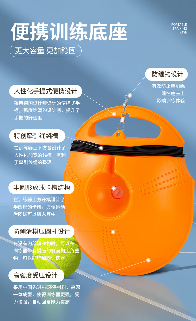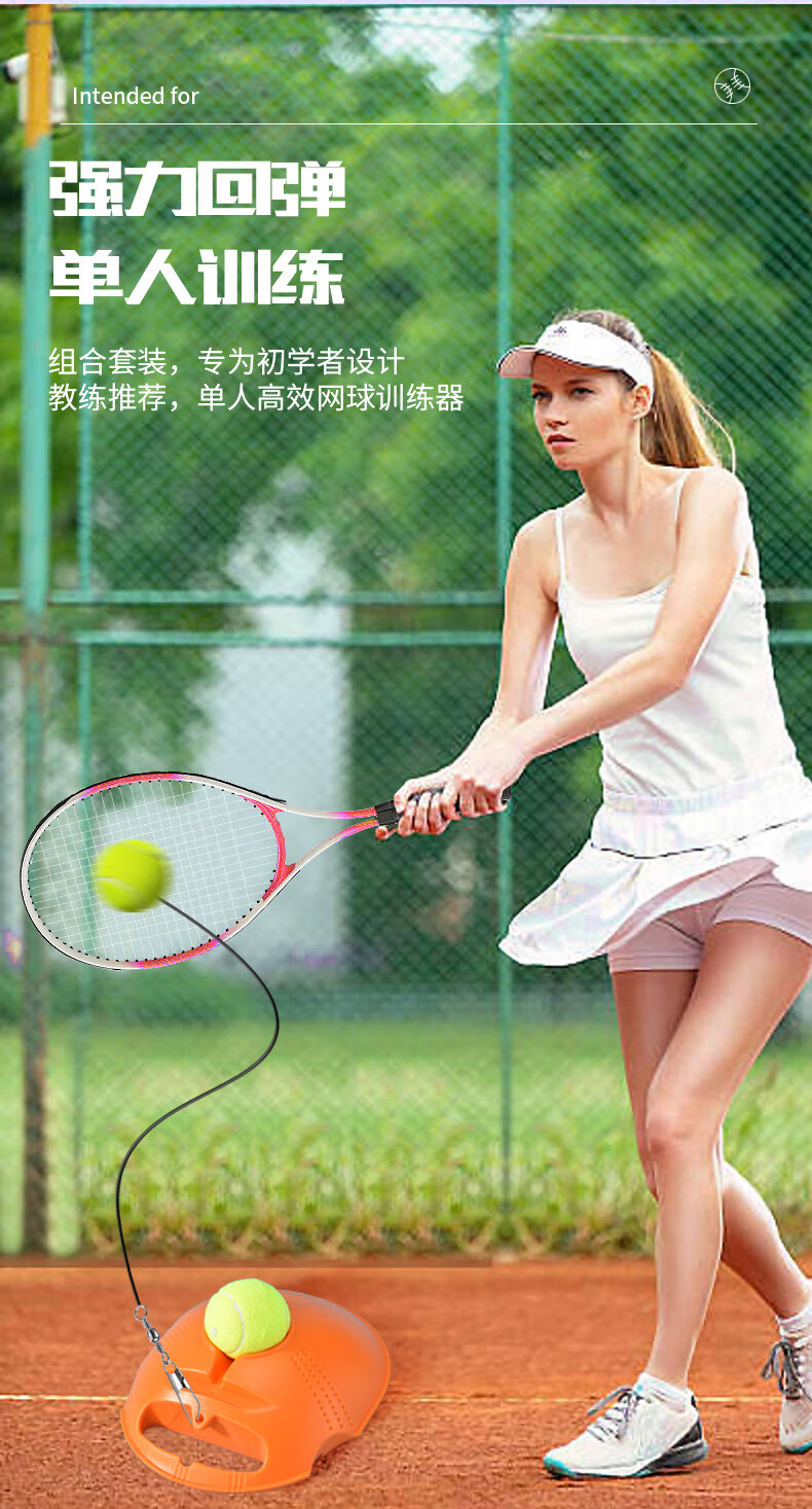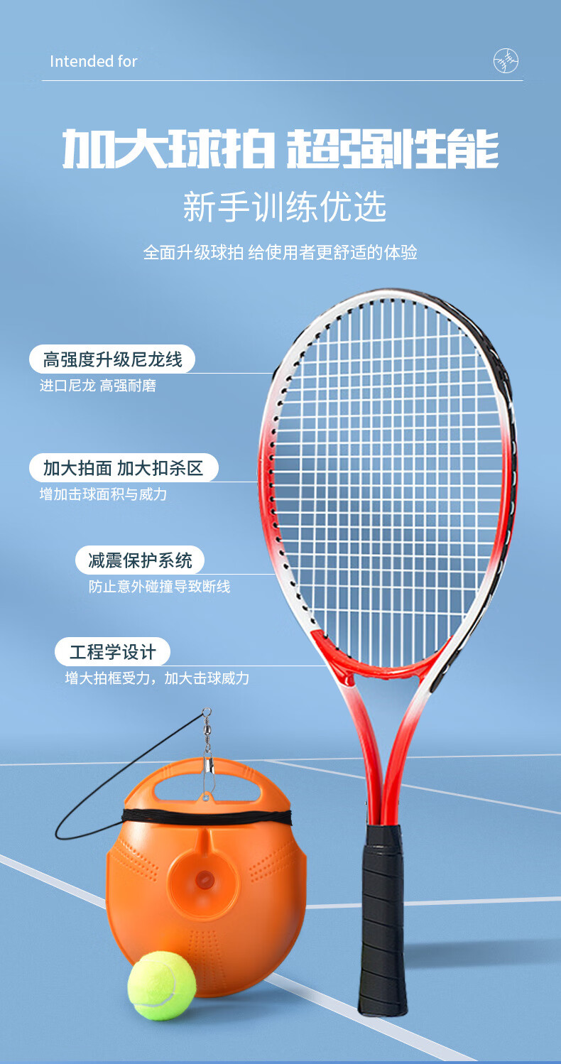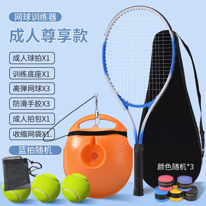 商品名称:网球训练器 单人网球带线回弹训练器套装 带绳网球成人户外自打回弹网球训练器带拍底座 一个人打自己飞回 网球单拍+带线球*3+防滑手胶*3+底座+包
