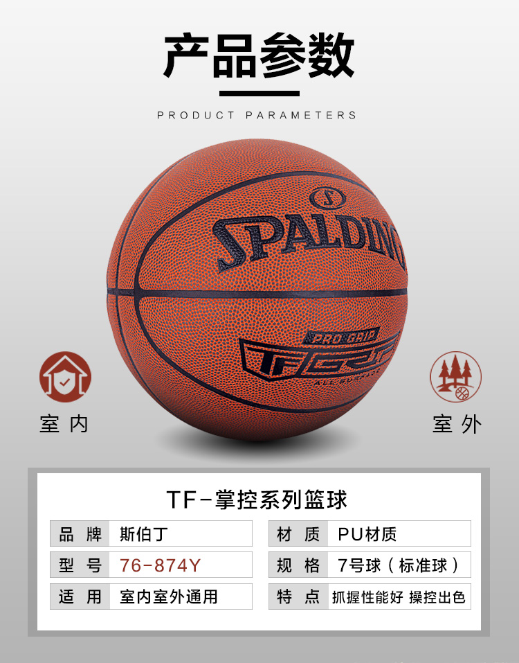 商品名称:斯伯丁(SPALDING) 比赛篮球掌控赛事室内外PU耐磨7号蓝球76-874Y/74-604Y