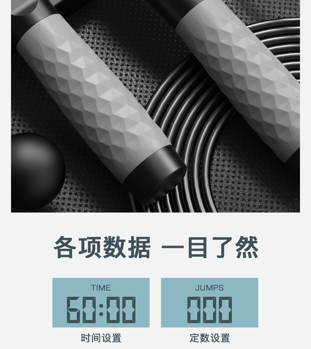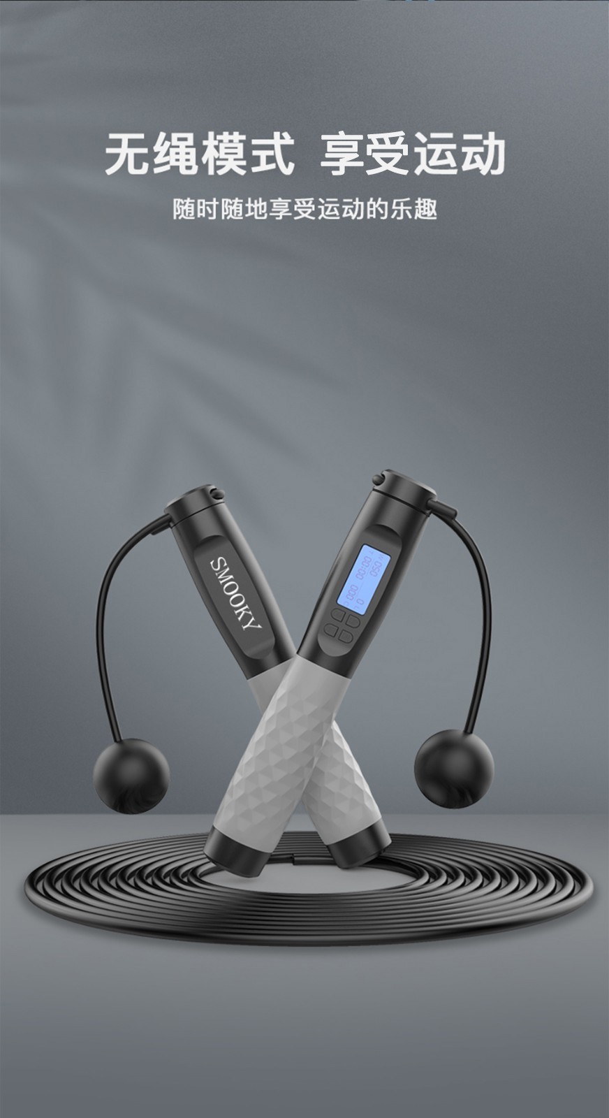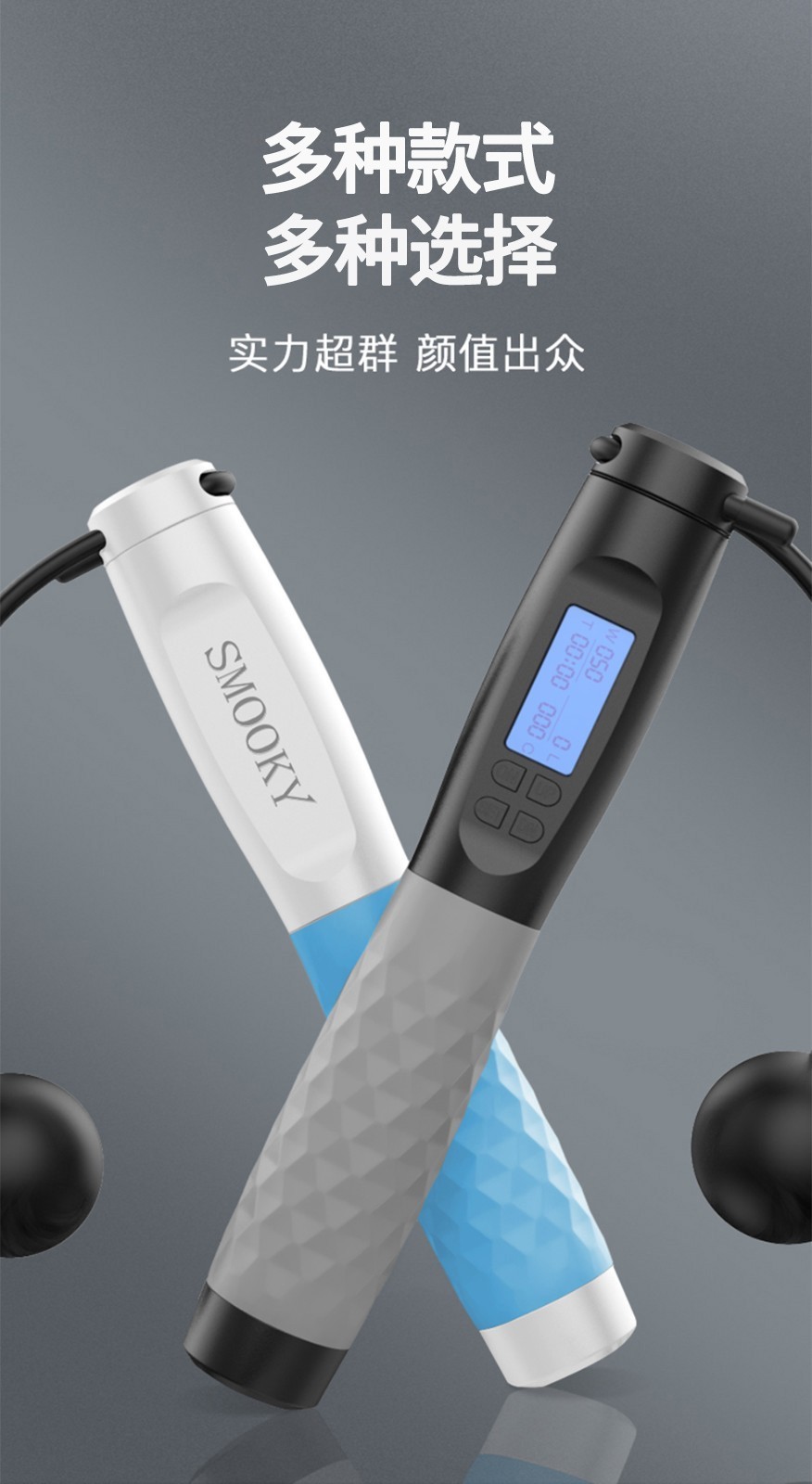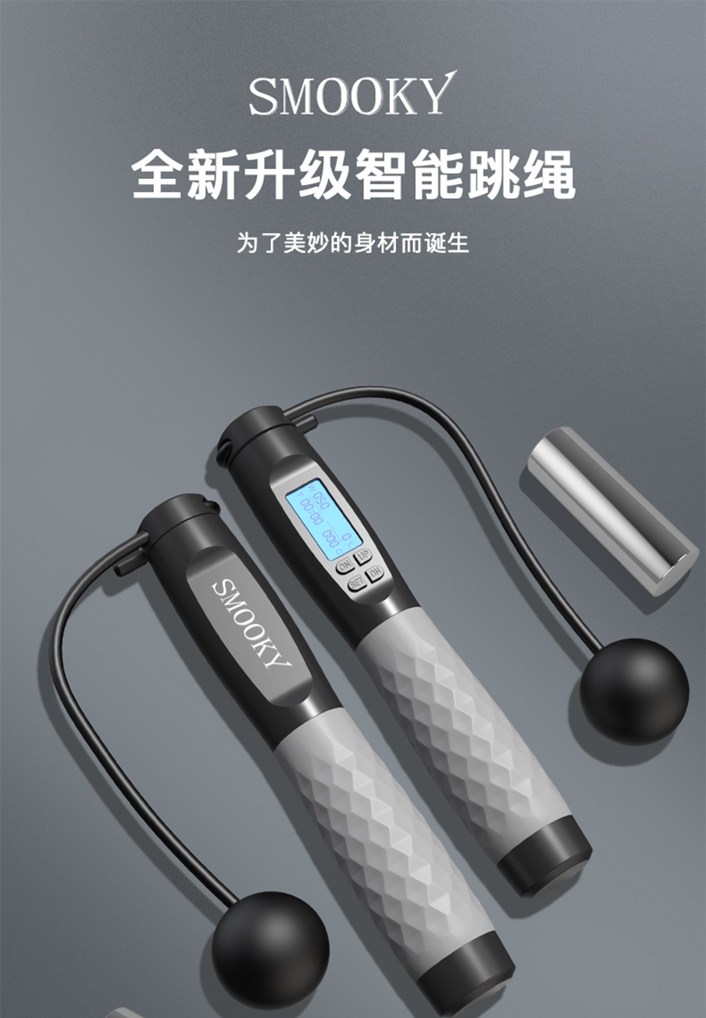 商品名称:SMOOKY 专业计数成人跳绳无绳钢丝轴承防绕绳健身器材运动体育训练用品中考跳绳中考智能跳绳儿童跳绳 【有绳+无绳大球+负重】计数黑灰豪华款