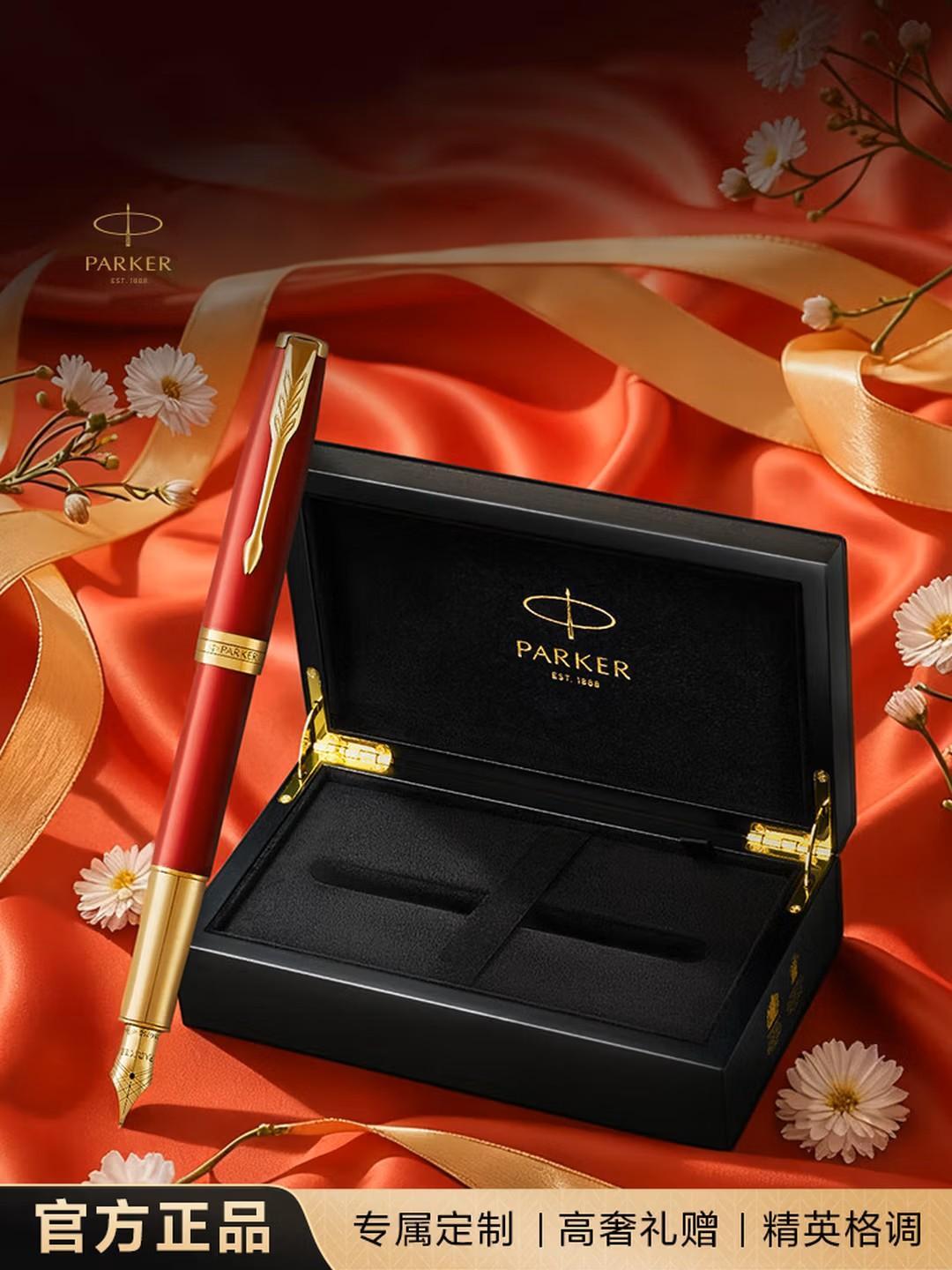 派克(PARKER)高端钢笔 高档商务送礼生日礼物轻奢礼品 卓尔宝石红金夹墨水笔+木制礼盒